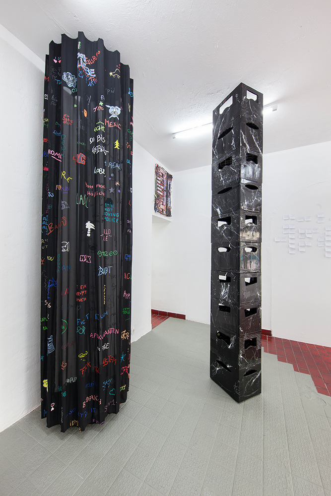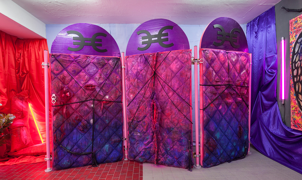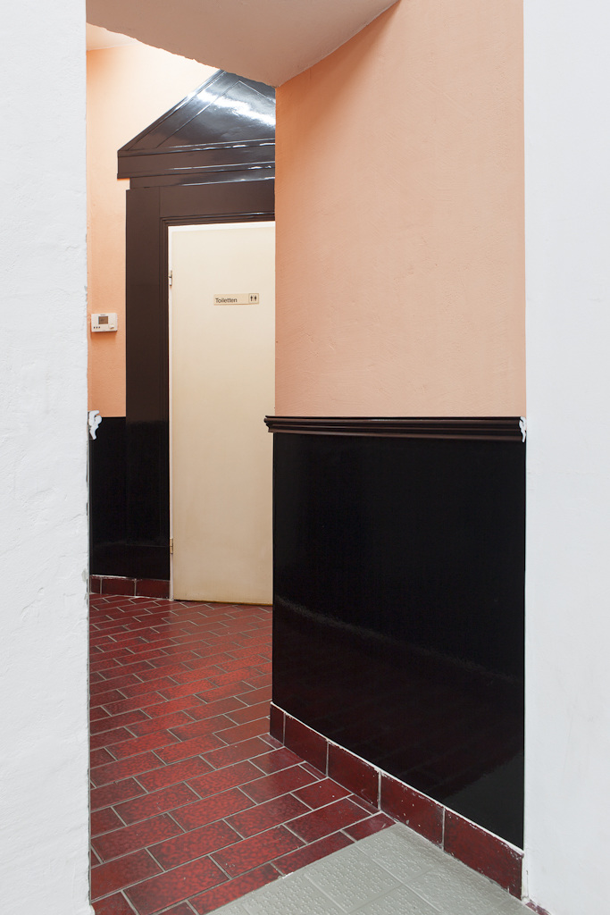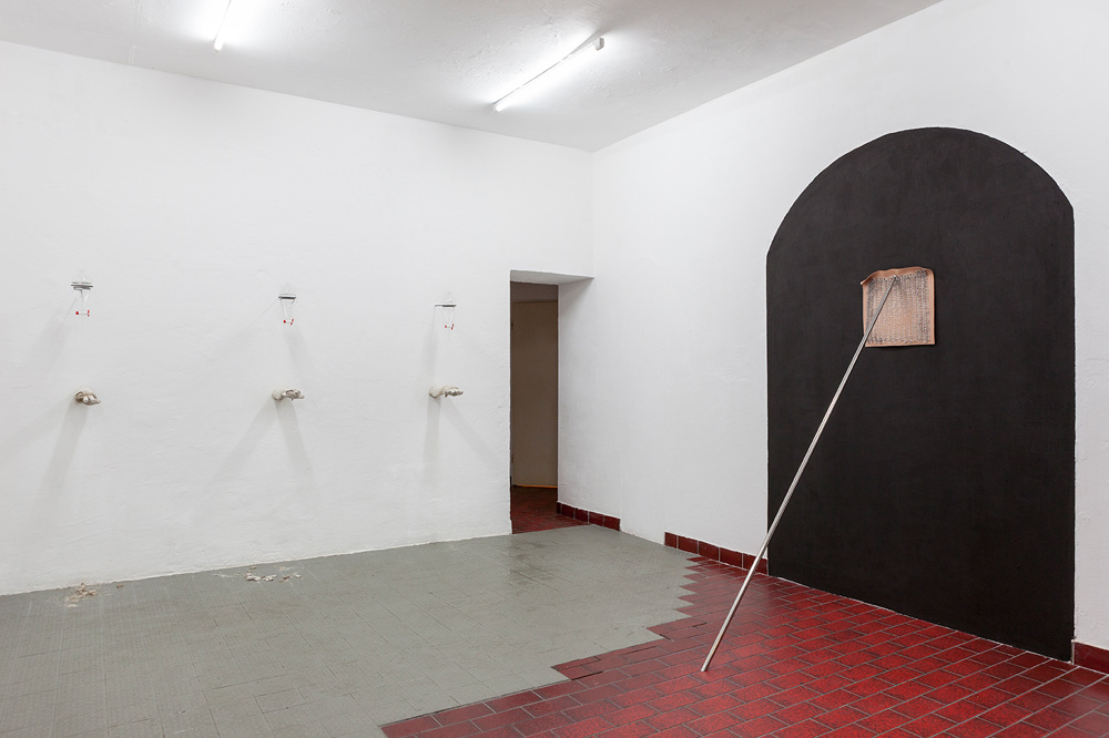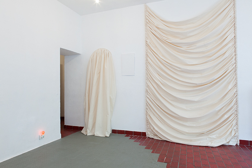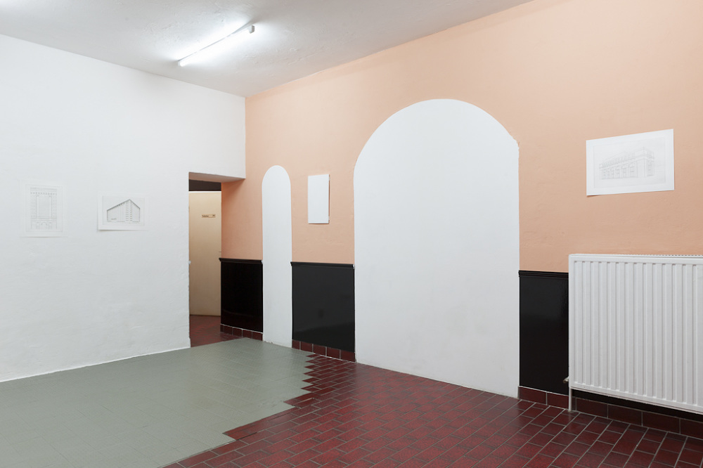 Through making classicist architectural elements meet with historical reconstruction, in her installation PARLOUR Chloe Brooks creates within the space a tension between private and public, where visitors have to reorient themselves and where the subtly induced previous use of the exhibition space also evokes the more contemporary and more sleazy connotations of a massage parlour.