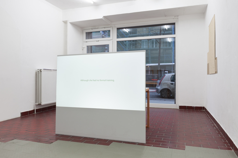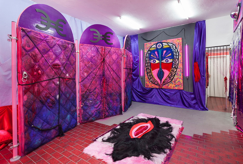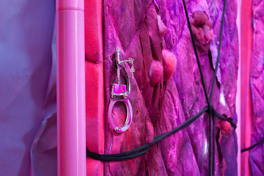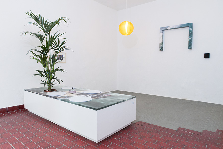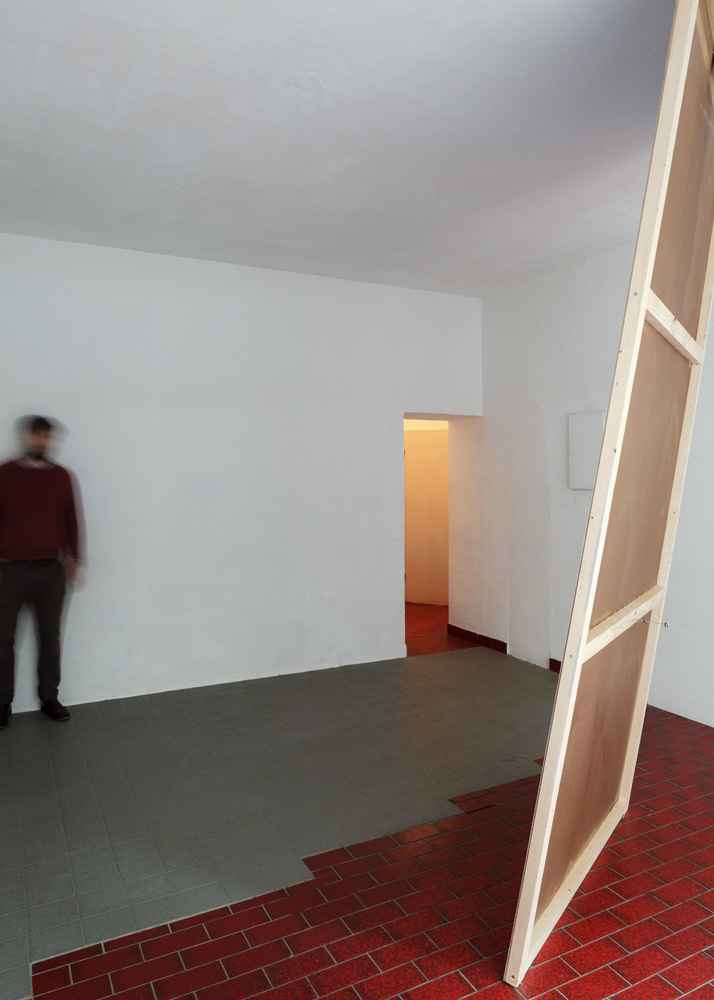 Through making classicist architectural elements meet with historical reconstruction, in her installation PARLOUR Chloe Brooks creates within the space a tension between private and public, where visitors have to reorient themselves and where the subtly induced previous use of the exhibition space also evokes the more contemporary and more sleazy connotations of a massage parlour.