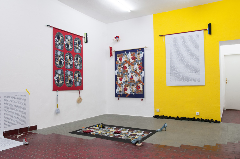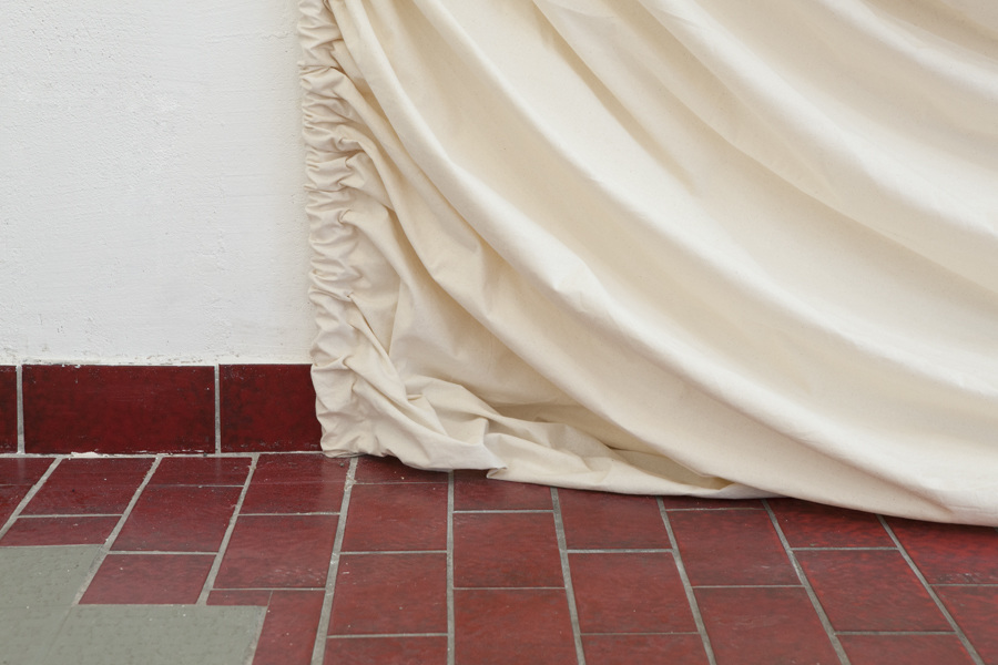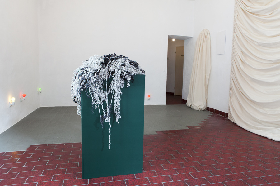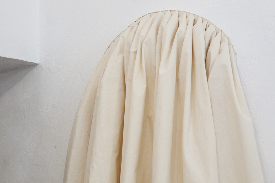 Studying the vast variety of complex weaving patterns, the different structures and textures of fabrics, Dagmar Heppner is interested in textiles and garments for their potential as metaphor to explore the theme of the exhibition - 'Stories'. Heppner is interested in stories as our social fabric and underlying texture of our worlds, and in how narratives affect our perception by offering patterns of recognition. The artist thus understands stories not as coherent, linear narration with beginning, middle, and end, with progress to and regression from a climax. Instead, Heppner treats stories and storytelling as social phenomena and as means of making sense of the world and relating to it through negotiating it with others; stories thus existing as a living dynamic thing in a state of continuous flux. Placing her works in the space like subtle and poetic suggestions, as hints and clues inviting our attention and interpretation, Heppner encourages us to read the works as volatilising structures and to see them for their precarious contexts.