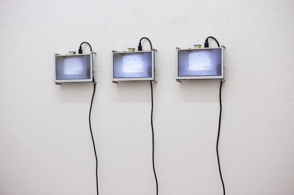 The repetitive character of hostility and the circular nature of life depicted in the LED light dance of may-bugs, capture the tense profile of this biopolitical landscape. Rethinking archaic constructs such as dominance, trance, and spiritualism, the project attempts to release the tireless hum stored in fossilized pine resin.