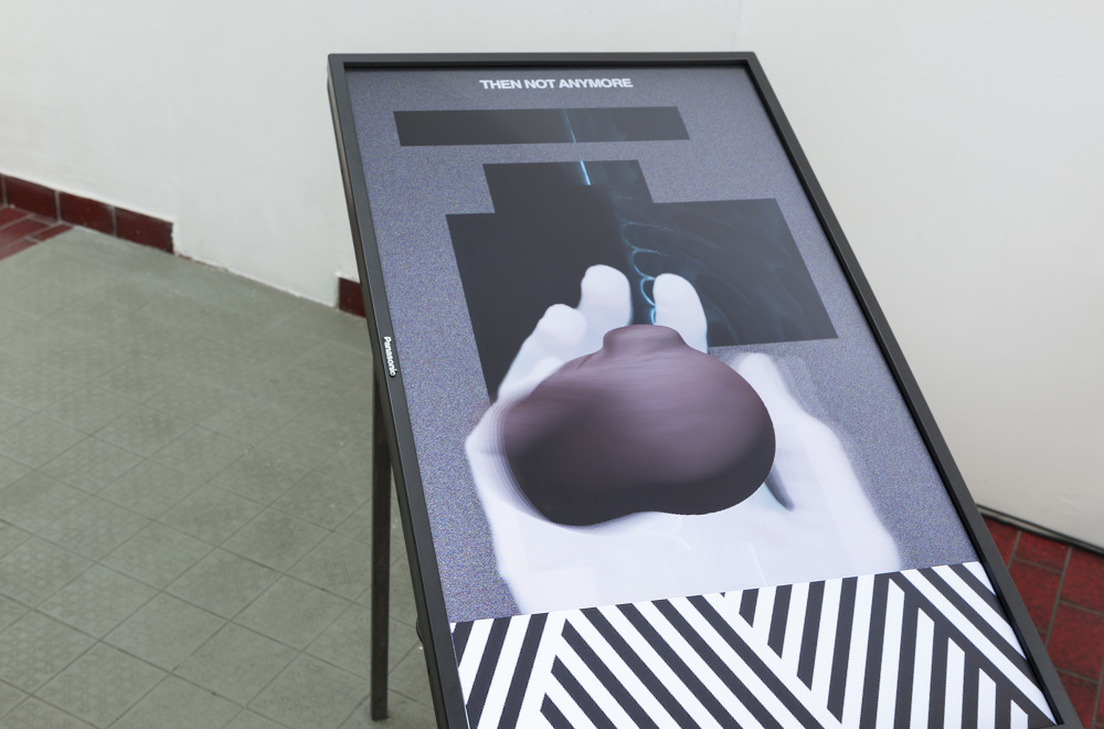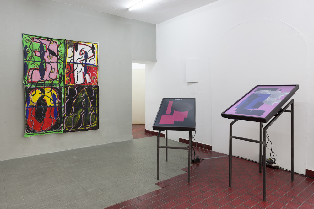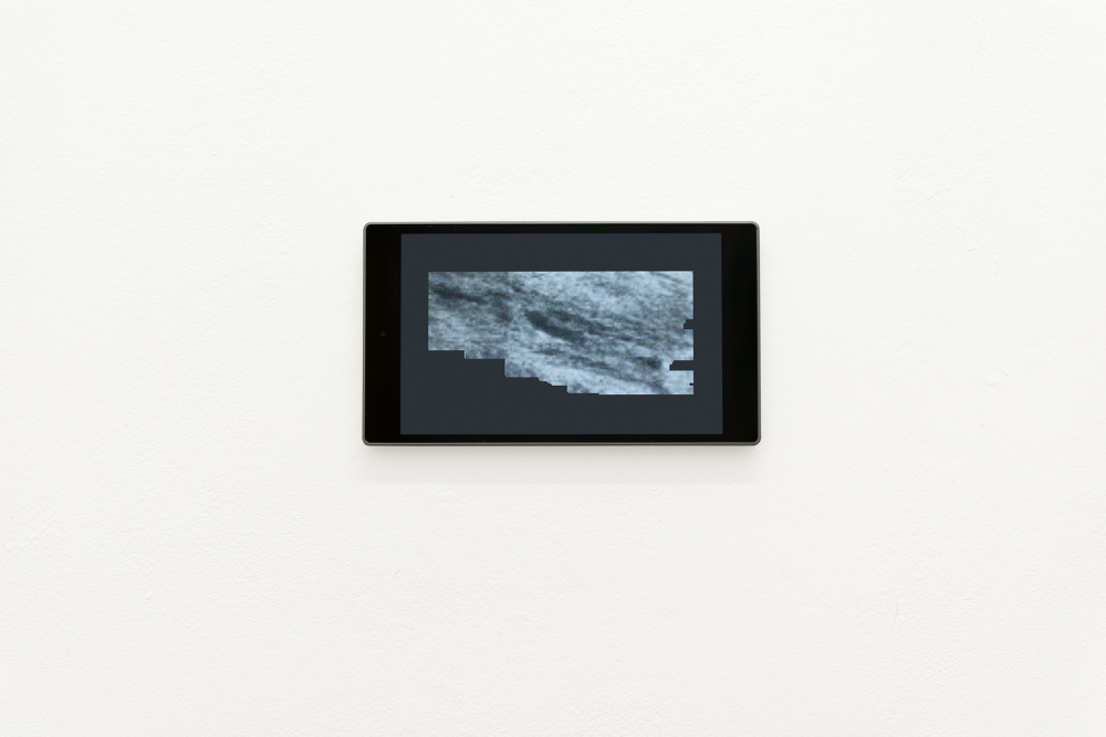Polychroming is a new project by English artist Joe Clark and his first exhibition in Berlin. At the centre of the installation is a video work in which an abstract chrome figure set against a shifting field of colour similarly waxes and wanes, continually re-rendering the image. The title refers to the traditional technique of hand-colouring the surfaces of stone or wooden sculptures in order to mimic life and alludes to echoes of it in the production of contemporary images.