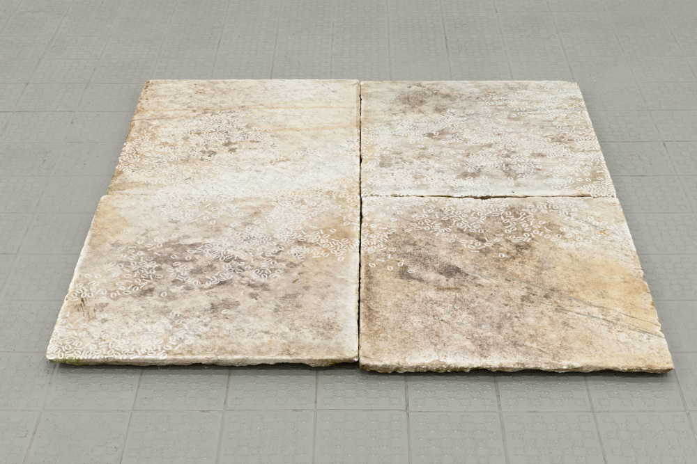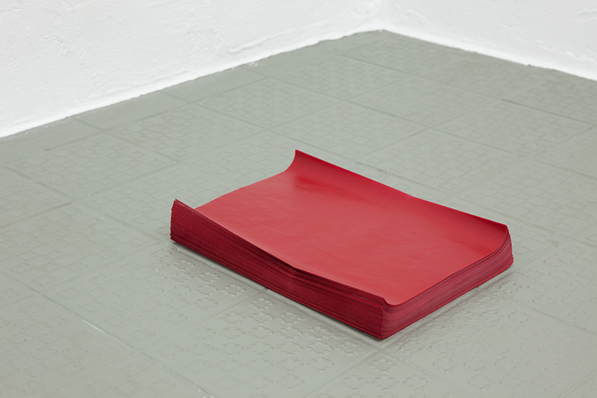 Jaimini Patel’s experimental approach to the vitality and agency of objects and materials serves to investigate and re-evaluate our relationship with the material world. For her new installation Measure, Patel uses the outline of one of the distinctive red tiles from the gallery floor as a device to explore particular meditative sets of actions in the studio. The evidence of these repetitive performances is made available in the exhibition. Whilst certain actions are explicit and visible, others are more reticent. In Measure the artist creates poetic material encounters that suggest the possibility of a misalignment between evidence and experience: a disjuncture between the record and the private performance and observation of the action.