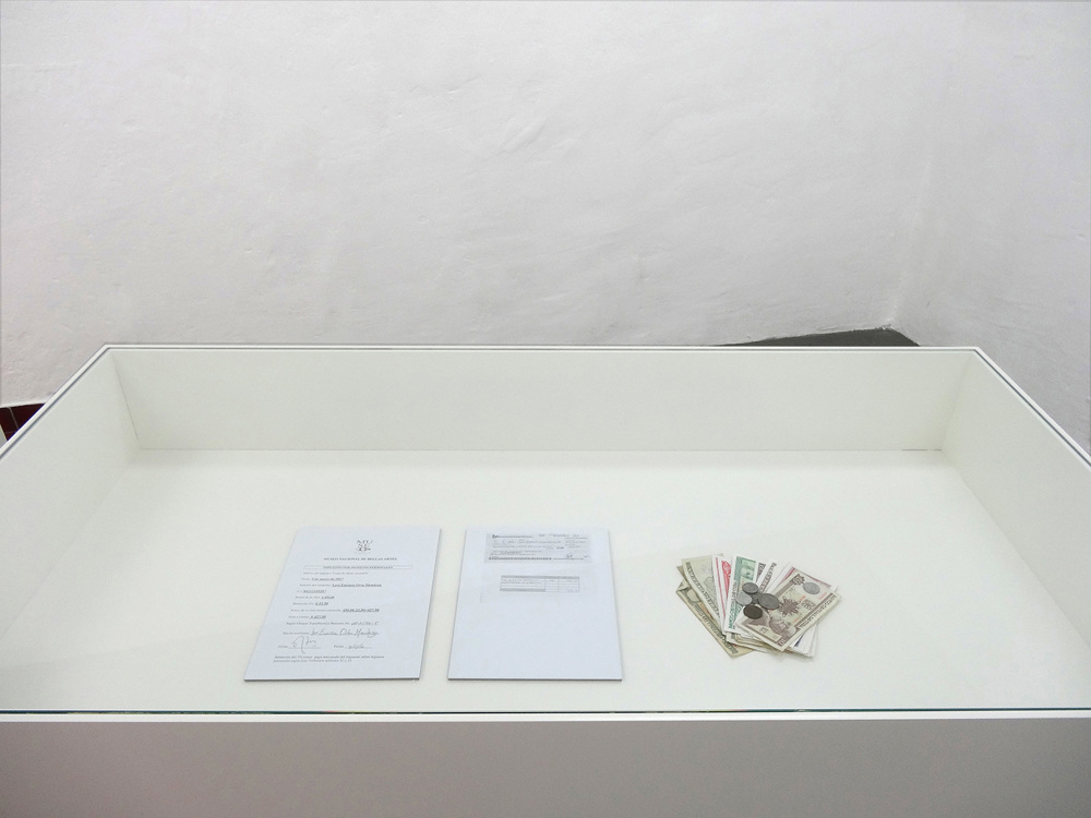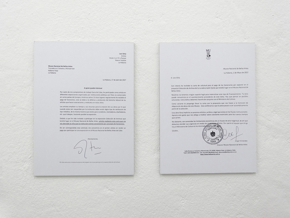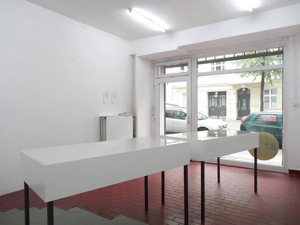 Since 2011, the focus of the works has shifted, as the artist has left Cuba for life in Europe. While Melis’ projects still rely on the collaboration with people, the roles which both artist and participants play in these projects are different under the rules and conditions of a competitive market under current conservative governments. In exhibitions, Melis shows the results of his investigation of the conditions and the value of labour as videos, photographs, or installations. Often providing the works with a factual realism through the display of names and number of his collaborators, Melis creates works, which are paradoxically both serial and personal. Melis’ installation at Centrum was his first exhibition project in Berlin.