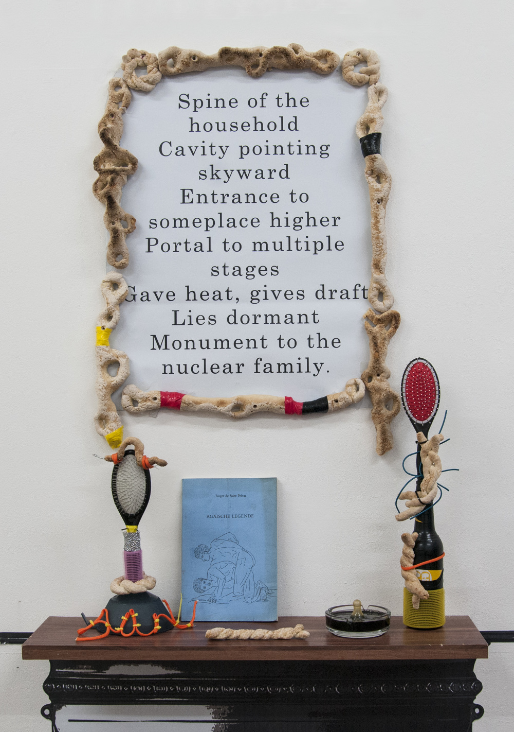 Angela Ender makes assemblages and installations from discarded items or cheaply bought objects. She is concerned with the formal aspects of these things; the colour, material, scale and shape. The histories and former functions are extracted to create new associations and ideas.