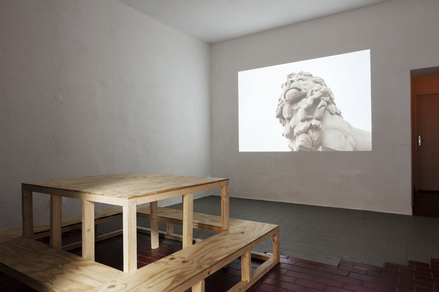 With her slideshow, stone-twice-fire, Sybella Perry (1986, UK) presents a new work, in which the artist explores human relationships to symbolic objects and analyses how we place meaning through situating statues and buildings within a specific environment and context. Borrowing elements of documentary and fiction formats, Perry combines photographic slides, which similar to the historical monuments they depict carry the idea of the possibility of freezing moments in time, with the by contrast time-based flux of the narrative voice. stone-twice-fire thus puts to the test the relationship between photography and story-telling, visual thinking and literacy and explores our constant struggle to try to make sense of things, and how the meaning we create over time corrodes and transforms as landscapes change and as the objects we give meaning to are moved, partially replaced, or preserved.